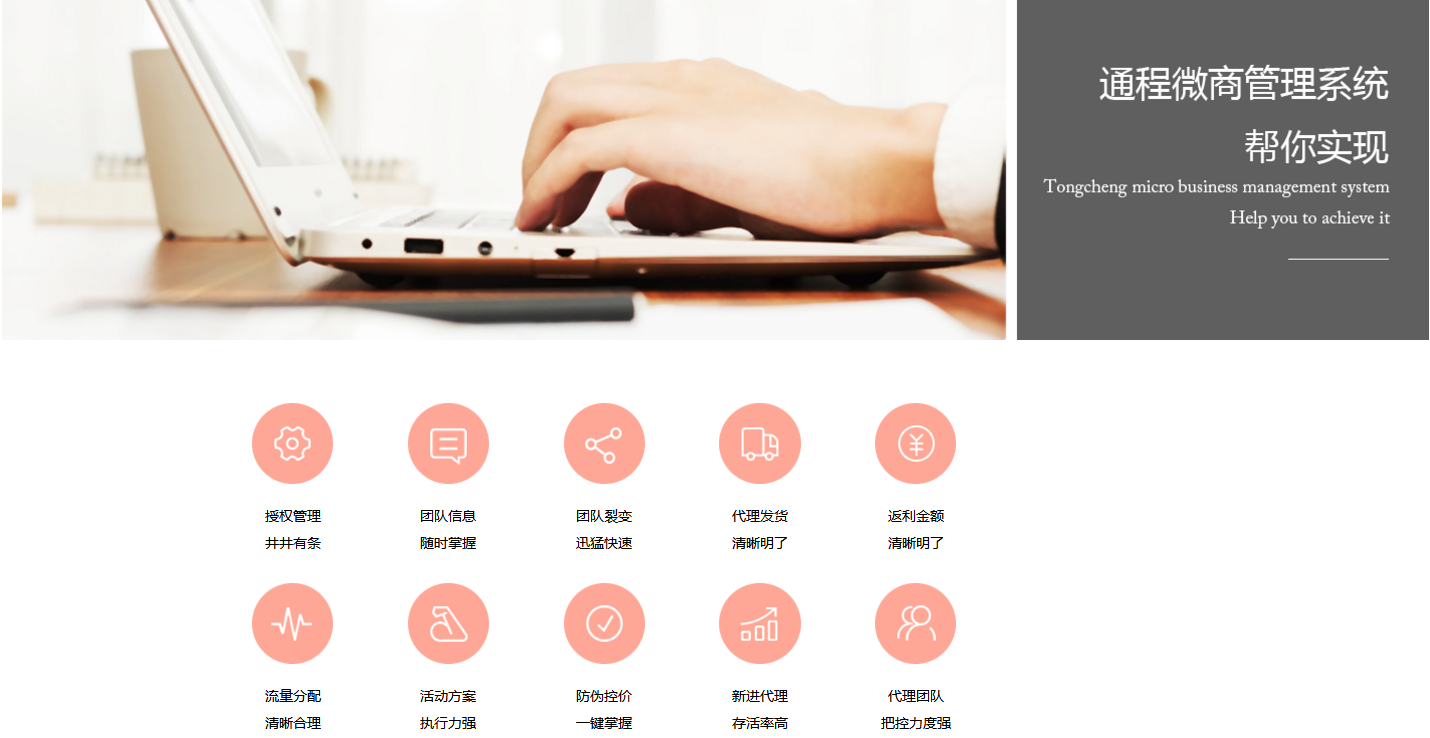 代理商授权管理、代理商订单管理、微商防伪、下单返利、微商控价、微商防窜货等功能,从根源上解决了做微商不便于管理,代理商窜货、乱价、卷钱跑路等情况的发生。